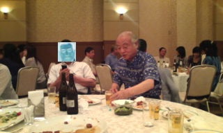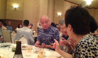同窓会総会初出席の○○と常連の平原。