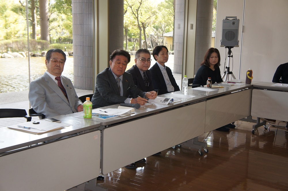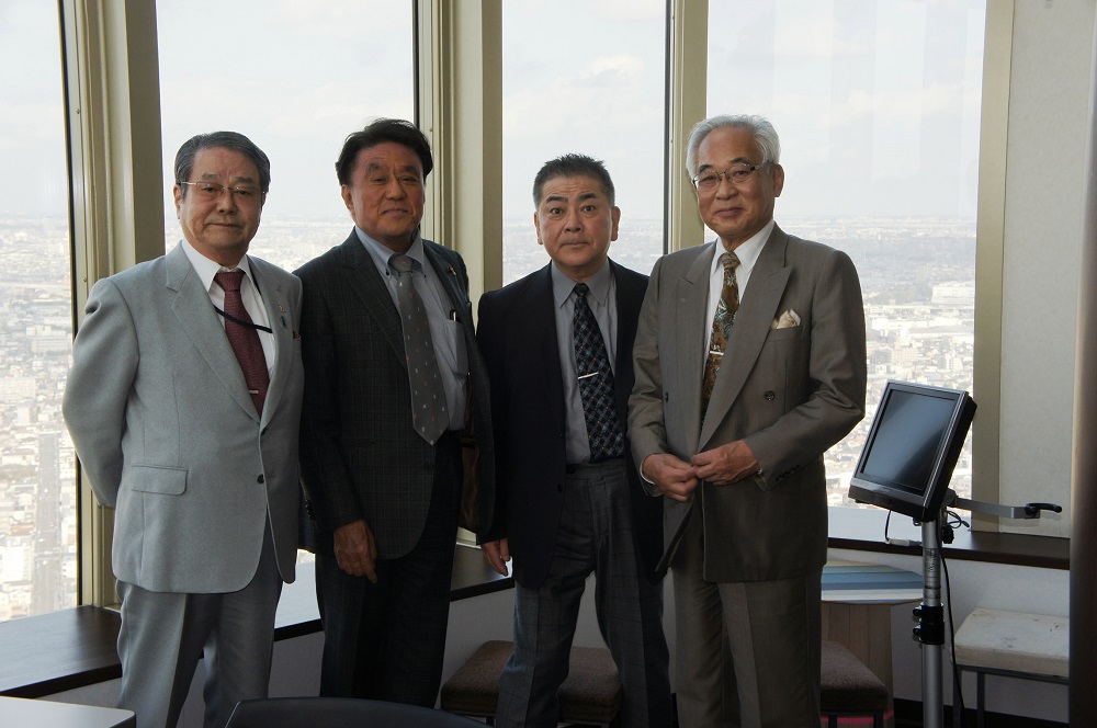 今回支部設立で上京した下関同窓会関係者4名、林会長(17期)、桃崎副会長(27期、田中町桃崎病院の理事)、宮田事務局長(27期、市役所職員)、上田女史