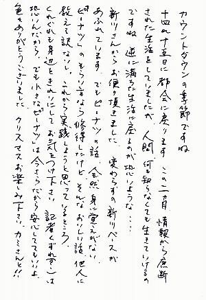 新川さんから お便り頂きました。