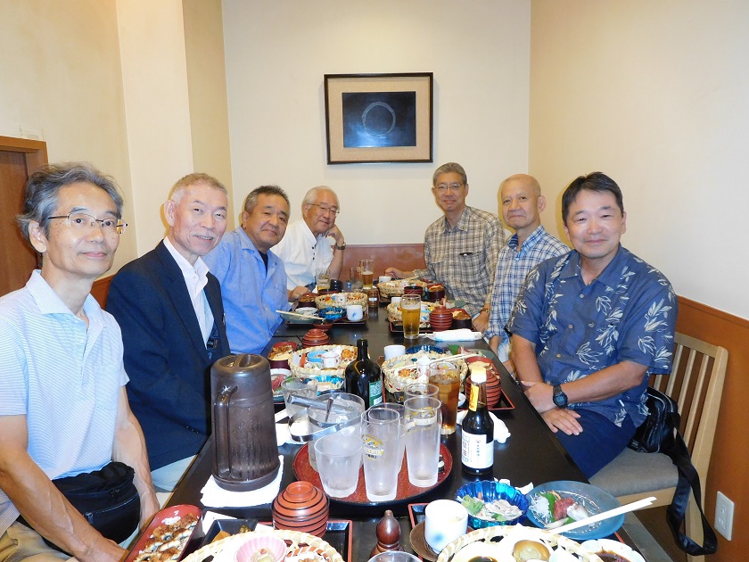 昨年に引き続き、今年も実藤さんが、学会で上京されたのを機に、8月6日 品川にある「つきじ植村」に、7人が集いました。