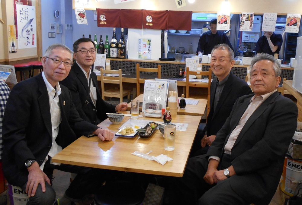 90歳を超えてなお矍鑠と実家で一人暮らしする、お母さんの様子見ついでに瓜生が来博したので、博多駅周辺の居酒屋で瓜生、実藤、中西、古殿のG(爺)4会談と洒落ました。