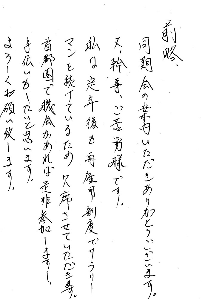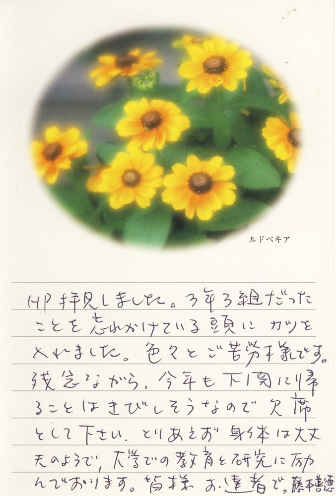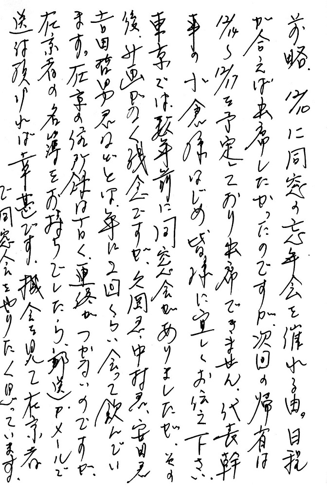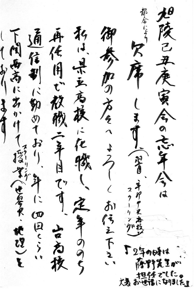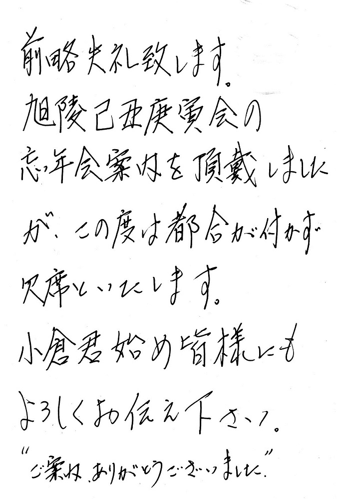 残念ながら欠席となった同期生からの手紙による近況がクリックすると開きます。