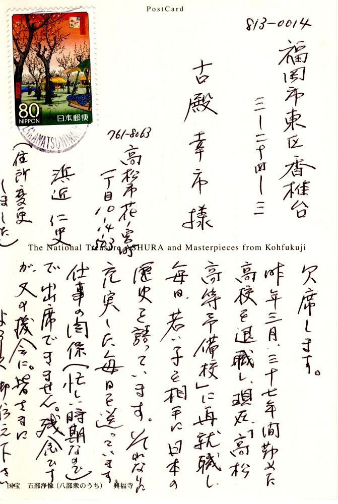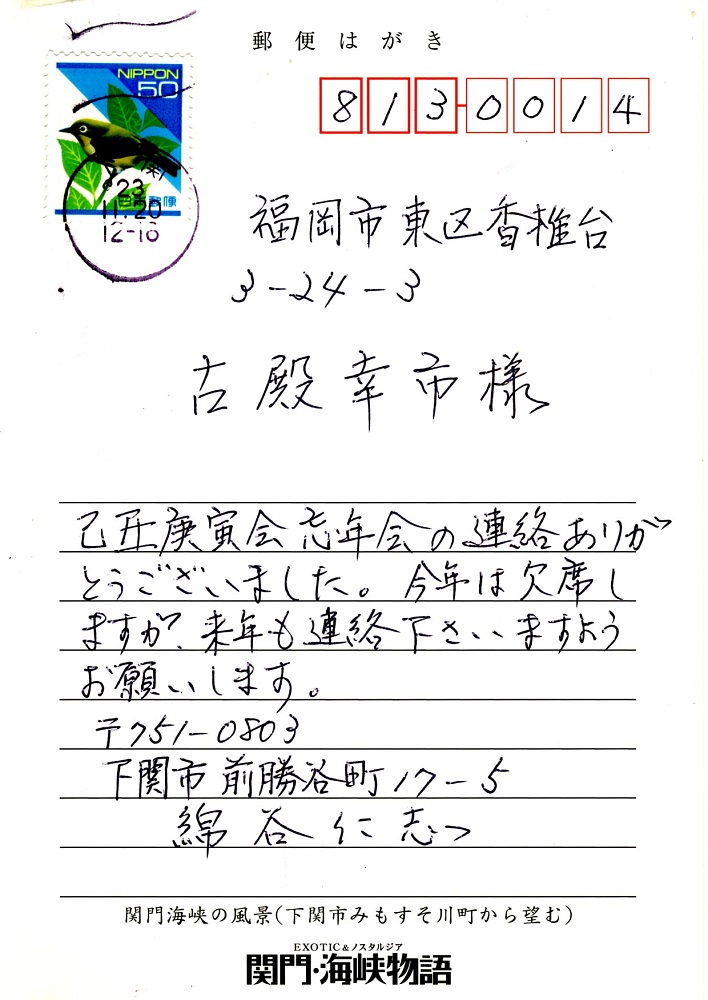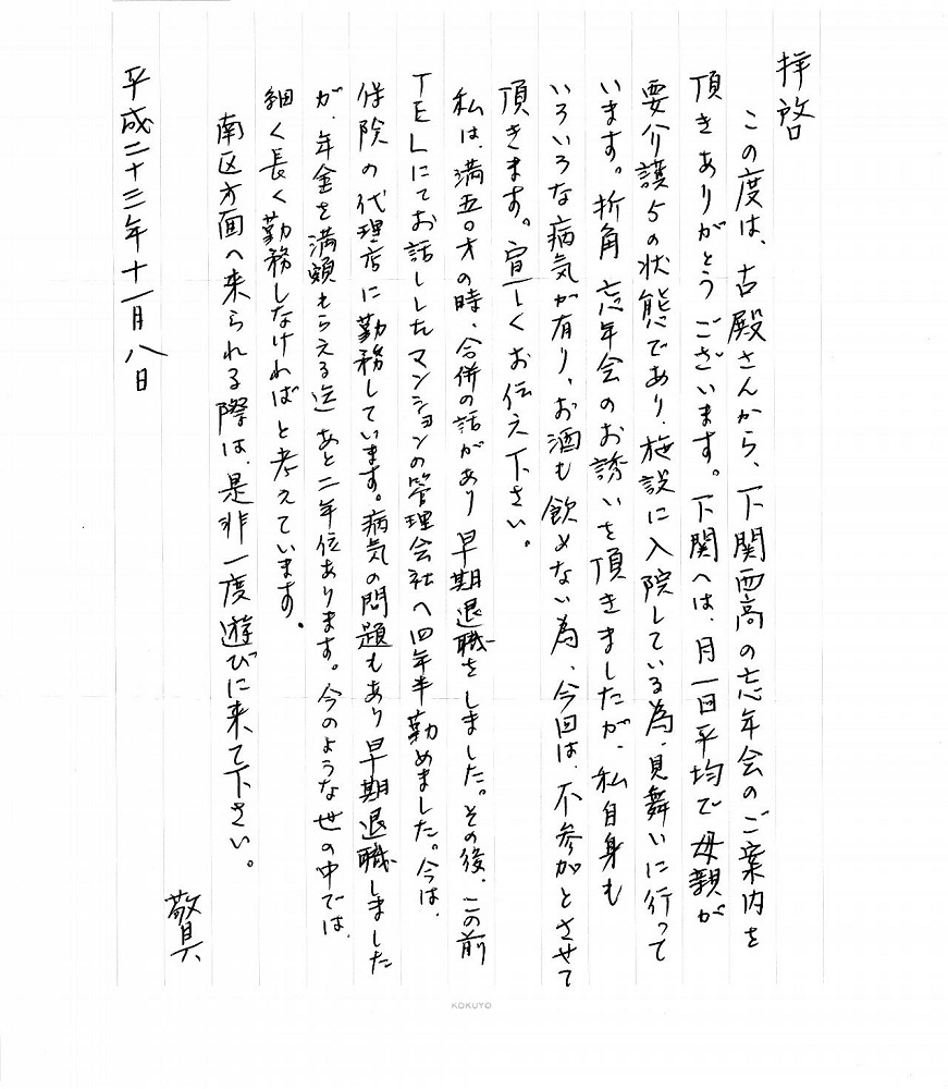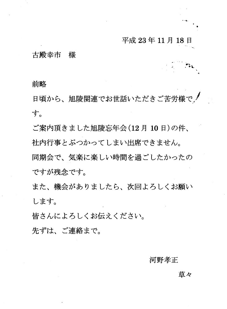 残念ながら欠席となった同期生からの手紙による近況がクリックすると開きます。