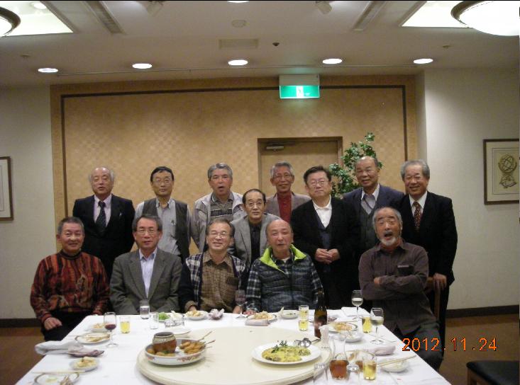 2012年忘年会は代表幹事の平原(3組)の 乾杯で始まり、忘年会には初参加の柿本(3組)と日高(4組)による、これまでの不参加弁明と近況報告を皆で拝聴。