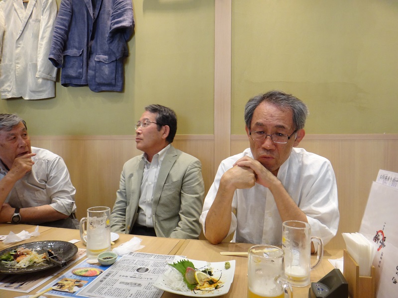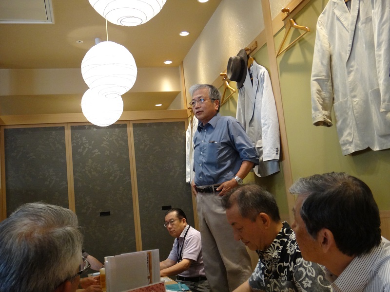 「ついでに飲ろう会」に今回初お目見えの兼清(酒仙の男)の堂々たる挨拶に、松浦(海商の男)古殿(楽易の男)伊達(旭の男)池本(堅気の男)皆、聞き入っております。